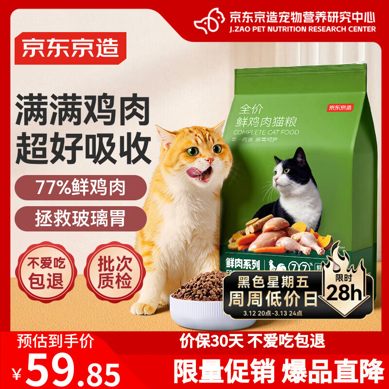 京东京造猫粮全价无谷鲜鸡肉低敏猫粮2kg单一肉源成猫幼猫通用