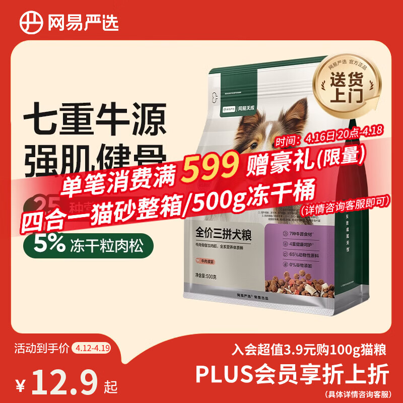 网易严选犬粮 全价冻干三拼狗粮幼犬成犬小型中大型犬通用泰迪 牛肉 500g