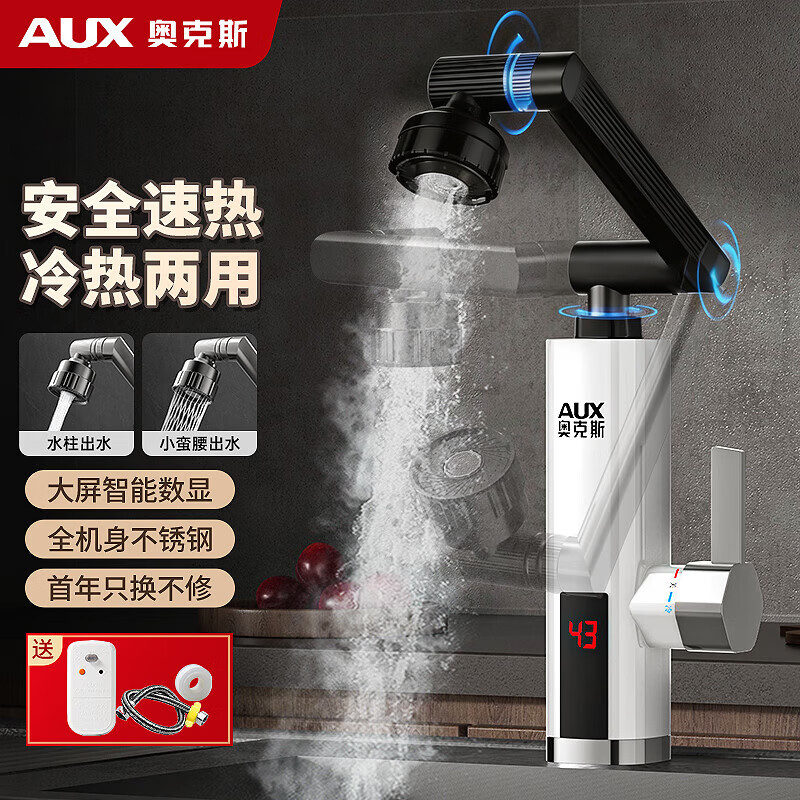 奥克斯(AUX)电热水龙头热水器加热水龙头快速热水变频恒温厨房下进水 【大屏数显】雪山白+升级机械臂+漏保插头