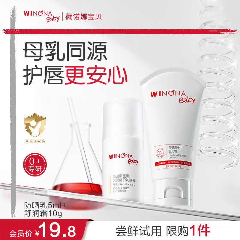 薇诺娜宝贝防晒乳5ml+舒润霜10g 宝宝儿童防晒spf50+高倍防晒婴儿可用