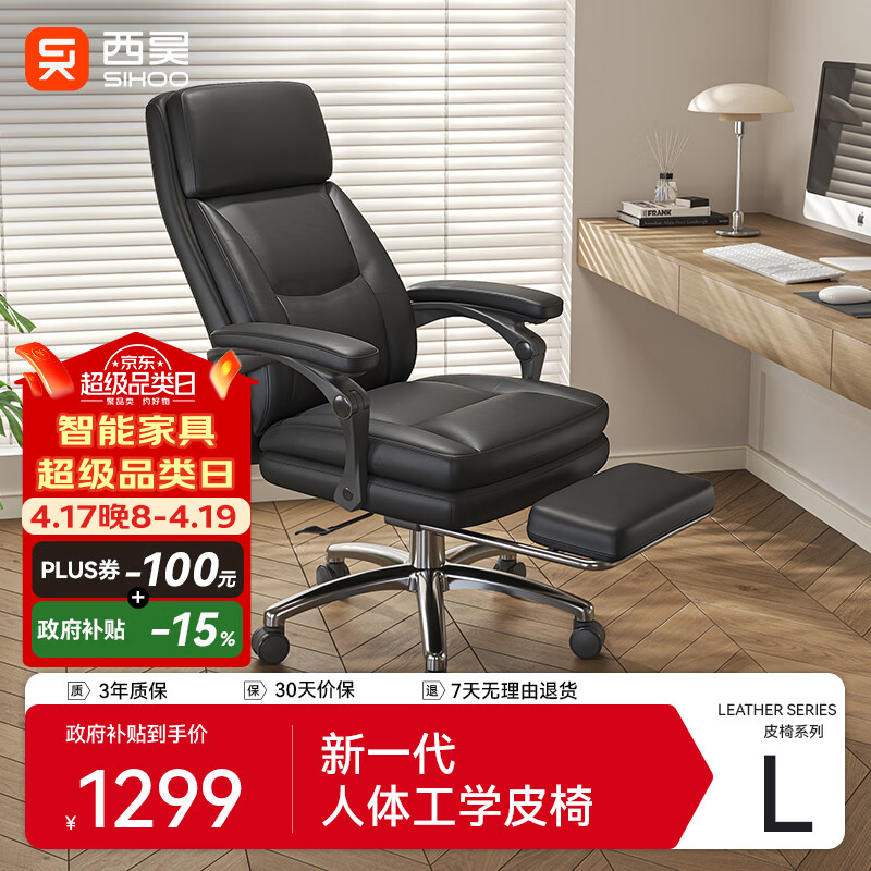 西昊L6老板椅人体工学椅真皮总裁椅久坐不累 家用办公椅可躺电脑椅子