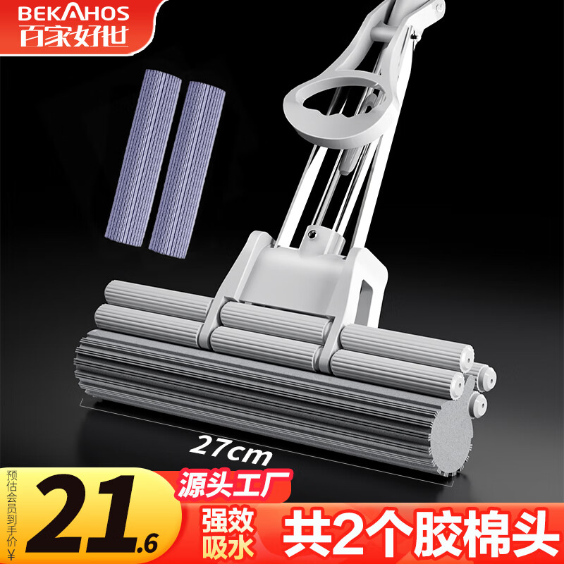 百家好世胶棉拖把27cm2头家用一拖净免手洗2026滚轮挤水懒人海绵吸水地拖