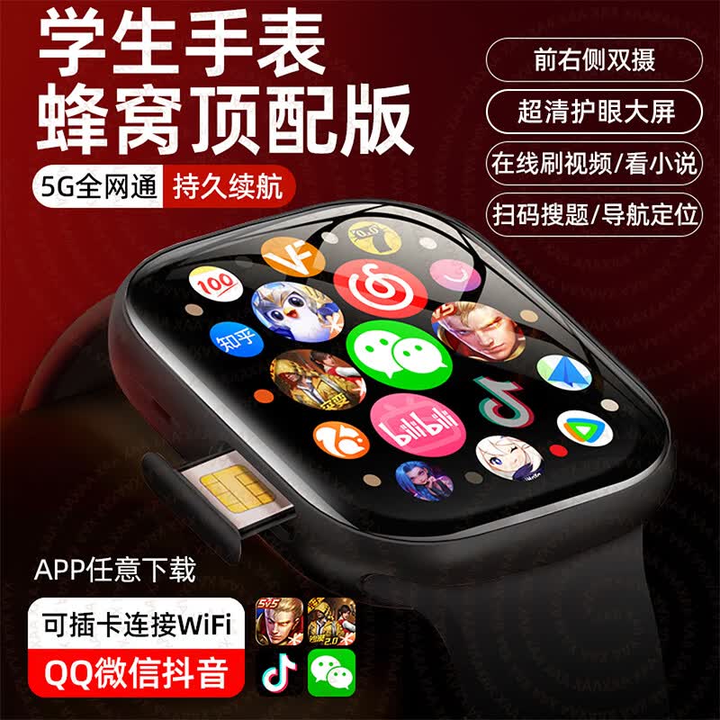 XAA华强北顶配S10Ultra蜂窝版5G全网通插卡智能电话手表微信聊天GPS定位学生初高中生青少年6-18岁 插卡黑【双摄像头】+任意下载+微信QQ抖音 5G全网通+超薄机身+手机级芯片丝滑流畅