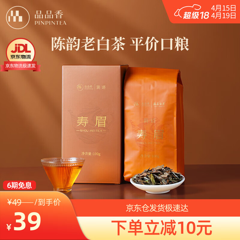 品品香福鼎白茶 寿眉老白茶礼盒装散茶口粮茶 茶叶自己喝 【自饮随享】2023年原料寿眉 100g*1盒 单盒装