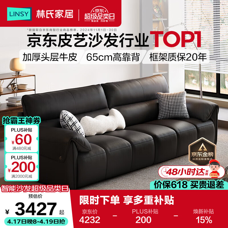 林氏家居钢琴键客厅沙发2026年升级款头层牛皮轻奢高级感48小时发货PS060
