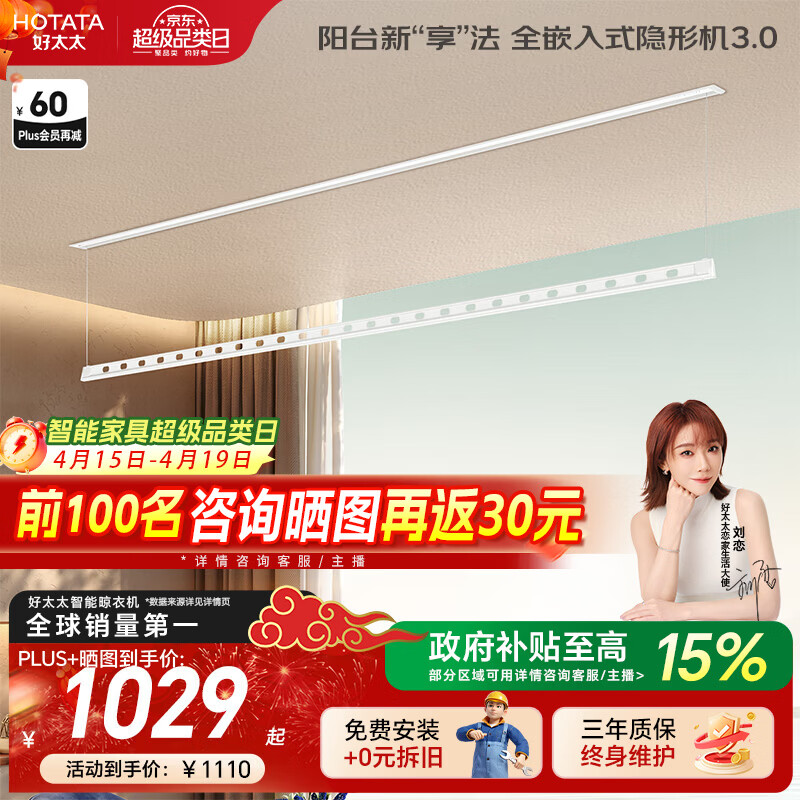 好太太隐形晾衣架电动晾衣机隐藏式自动智能升降阳台嵌入式晒衣架 D-3195:2.4米单杆+照明语音
