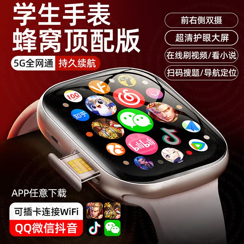 XAA华强北顶配S10Ultra蜂窝版5G全网通插卡智能电话手表微信聊天GPS定位学生初高中生青少年6-18岁 插卡白【双摄像头】+任意下载+微信QQ抖音 5G全网通+超薄机身+手机级芯片丝滑流畅