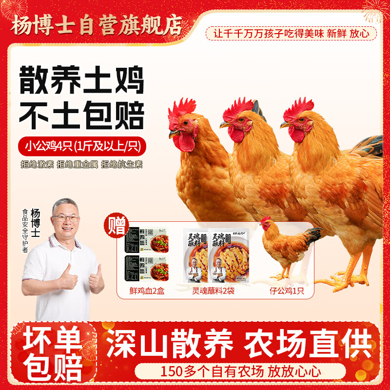 杨博士 皖南散养土鸡4只 净重4斤 未打鸣小公鸡童子鸡三黄鸡源头直发
