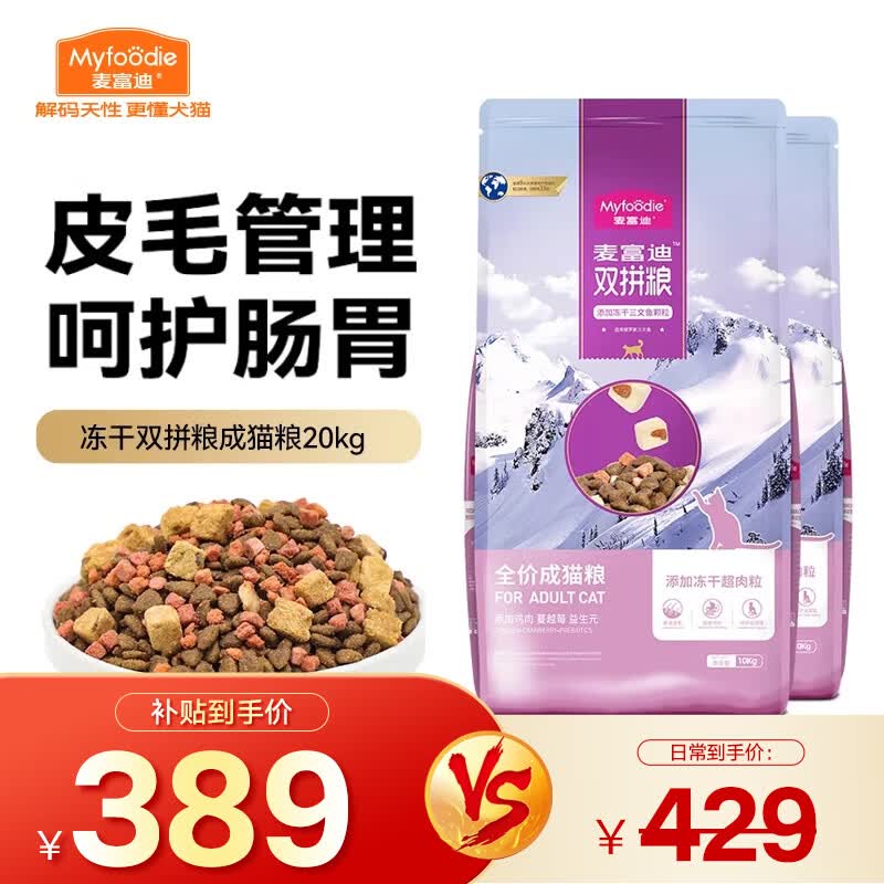 麦富迪 冻干猫粮 超肉粒冻干双拼粮(冻干三文鱼) 成猫粮20kg