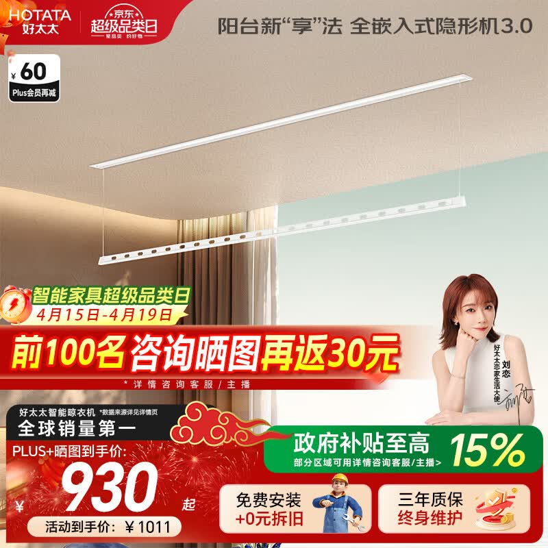 好太太隐形晾衣架电动晾衣机隐藏式自动智能升降阳台嵌入式晒衣架 D-3194:2米单杆+照明语音
