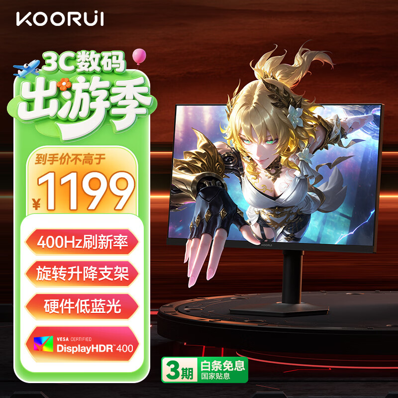 KOORUI科睿24.5英寸400Hz FastIPS快速液晶1ms 硬件低蓝光HDR400nit 旋转升降 电脑FPS电竞显示器X5 PRO