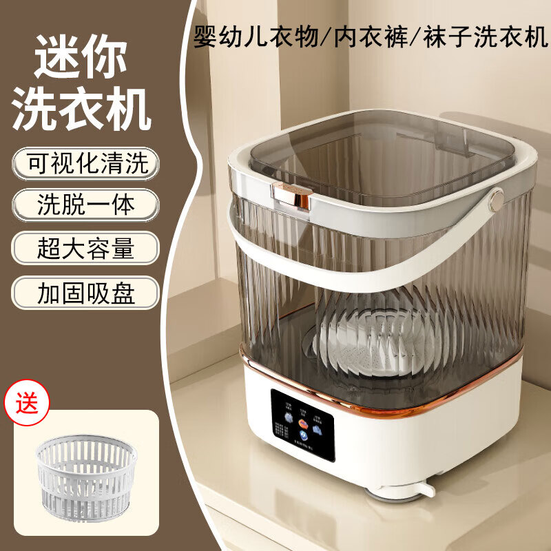 扬子集团半全自动迷你洗衣机小型洗脱一体 内衣内裤洗衣机学生宿舍 婴儿洗袜子机带脱水租房半自动 升级透明12L冰川白|洗脱一体+低音抑菌+悬空沥水