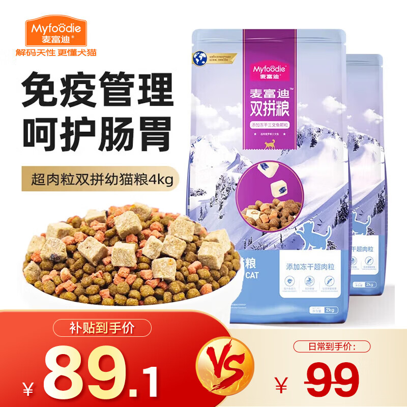 麦富迪 冻干猫粮 超肉粒冻干双拼粮(冻干三文鱼) 幼猫粮4kg