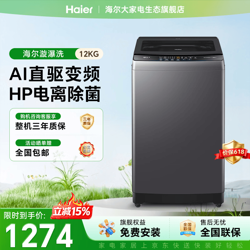 海尔波轮洗衣机全自动10/12公斤大容量家用静音电机抗菌波轮高效除螨家电补贴立减15%送货上门免费安装 波轮 12kg -BZ20D1|1.25漩瀑净+直驱
