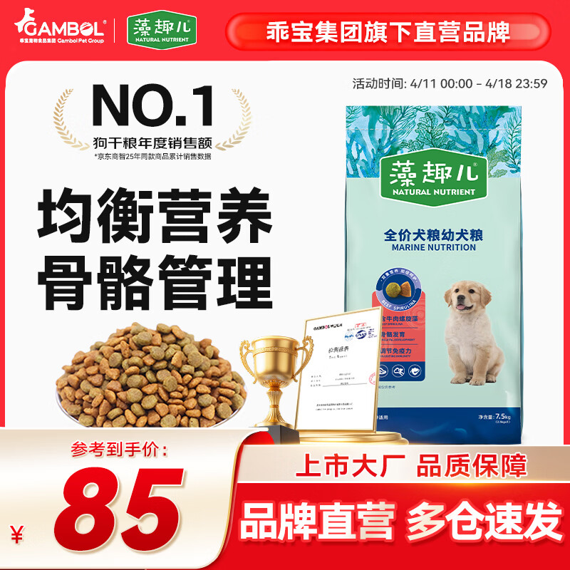 藻趣儿 狗粮 通用全价犬粮小中大型犬泰迪柯基金毛拉布拉多 幼犬粮 7.5kg