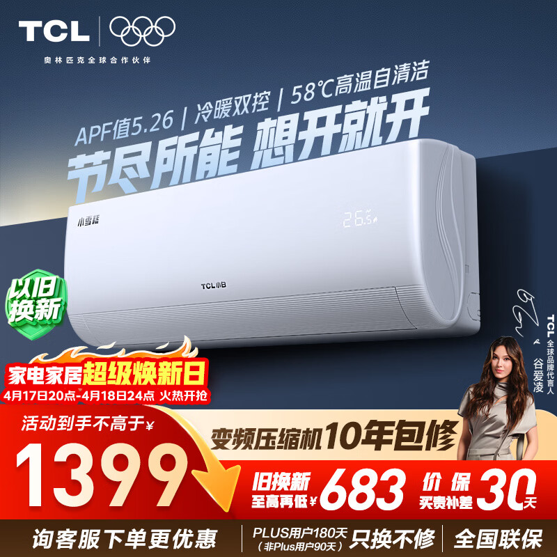TCL空调小白1匹新一级能效变频壁挂式冷暖KFRd-26GW/D-XB11Bp(B1)