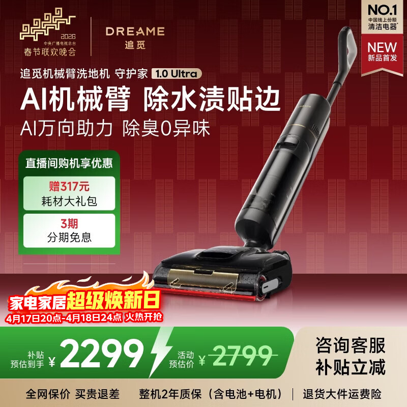 追觅春晚合作洗地机守护家1.0 Ultra【AI双向助力】AI机械臂洗拖吸拖一体机自动清洗拖