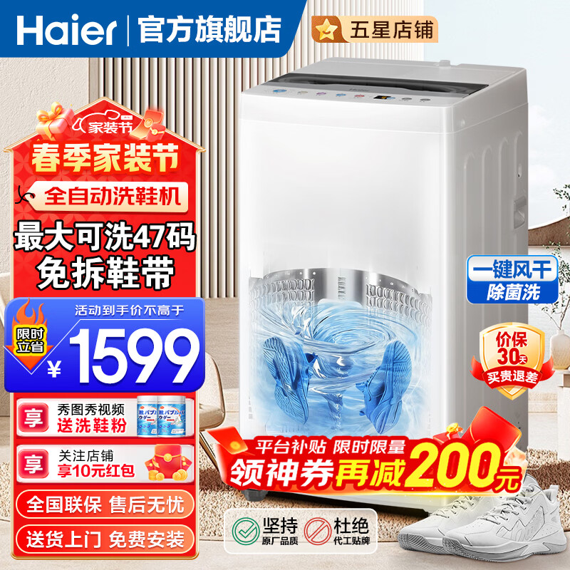 海尔(Haier)洗鞋机全自动刷鞋洗袜子机家用懒人神器 洗脱一体专业洗鞋机 一投即洗免拆鞋带 【行业热销 可洗2-5双 风干除菌】