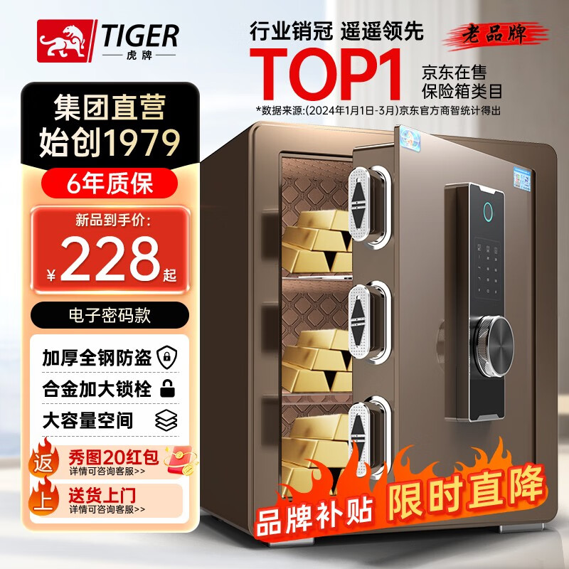 虎牌保险柜家用小型指纹密码WIFI全钢防盗可入墙办公大型保险箱新款保管箱 45cm智铂系列-三层(超值推荐) 指纹/钥匙/密码/临时秘钥/(密码+指纹)