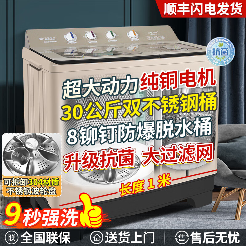 三峡劲霸【纯铜电机】大容量半自动洗衣机家用老式大容量双缸双桶商用酒店宾馆被子毛毯四件套以旧换新 30公斤钢波轮【9秒强洗+双钢桶+纯铜电机】 双缸