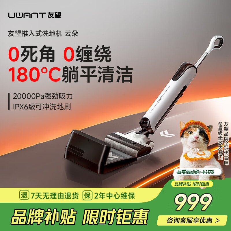 UWANT大开门同款 友望洗地机云朵plus增强版 0重力手柄推入式超薄躺平 家用洗吸拖一体自清洁拖地机器人 云朵 珍珠白
