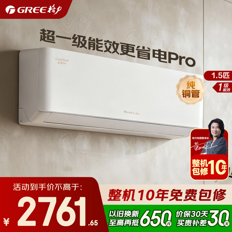 格力空调 1.5匹/大1匹 新一级能效 变频冷暖 纯铜管 省电 壁挂式空调挂机 家电国家补贴 格力出品 晶弘 1.5匹 云佳pro 新一级能效 纯铜管 冷酷外机