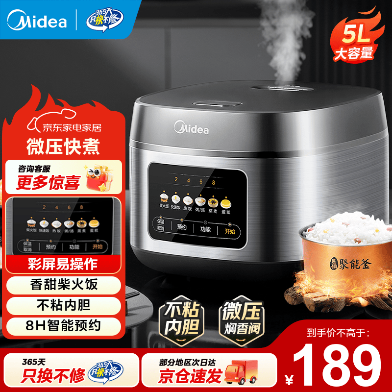 美的(Midea)电饭煲家用3-4-5-8个人多功能智能电饭锅 4L大容量 柴火饭煮粥煲汤不粘内胆蛋糕微压 【大容量】MB-529(3-10人) 5L 4-5L