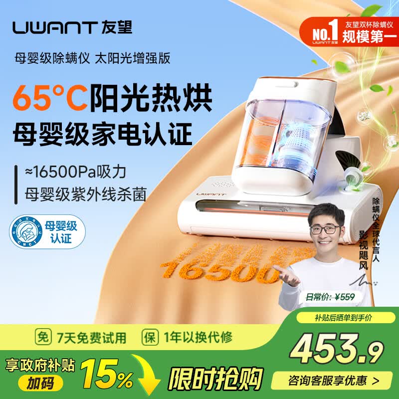 UWANT友望除螨仪床宝 大吸力紫外线杀菌双杯尘螨分离家用床上宠物除螨机超声波去螨吸尘神器 宠物家庭 M300SE太阳光增强【升级款】