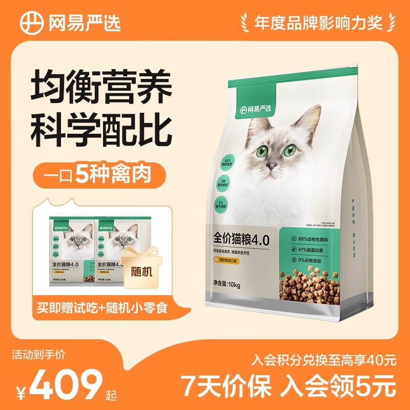 网易严选猫粮【推荐】全价猫粮 幼猫成猫主粮猫咪食品 一口9种肉 【4.0进阶款】原野禽肉口味 10kg*1袋