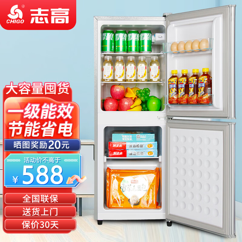 志高(CHIGO)双门冰箱家用小型一级能效办公室出租房宿舍用双开门中型二门电冰箱节能省电 一级能效-搁架款162L【冷藏三层 冷冻二层】