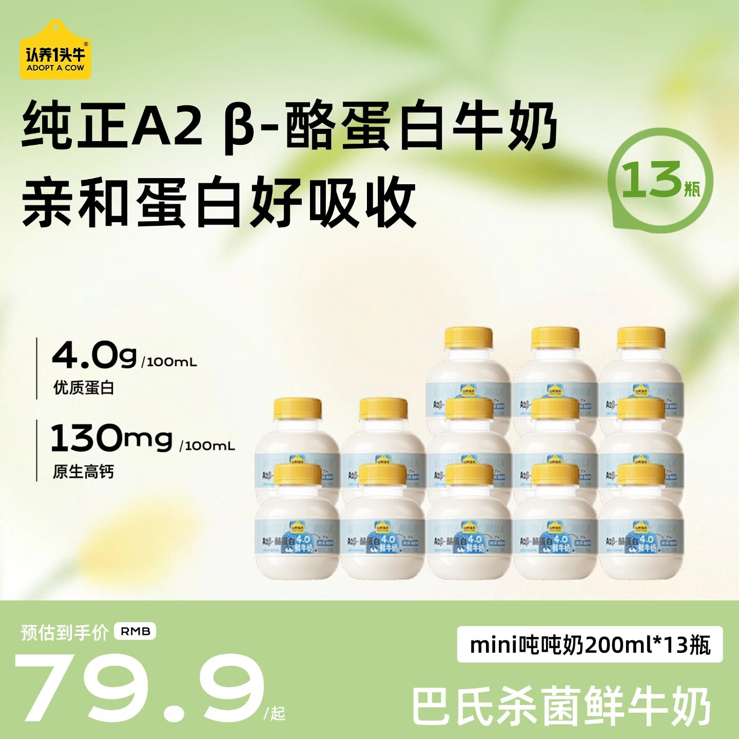 认养一头牛【代言人同款】mini吨吨奶A2β-酪蛋白4.0牛乳鲜牛奶营养儿童牛奶 mini吨吨200ml*13瓶