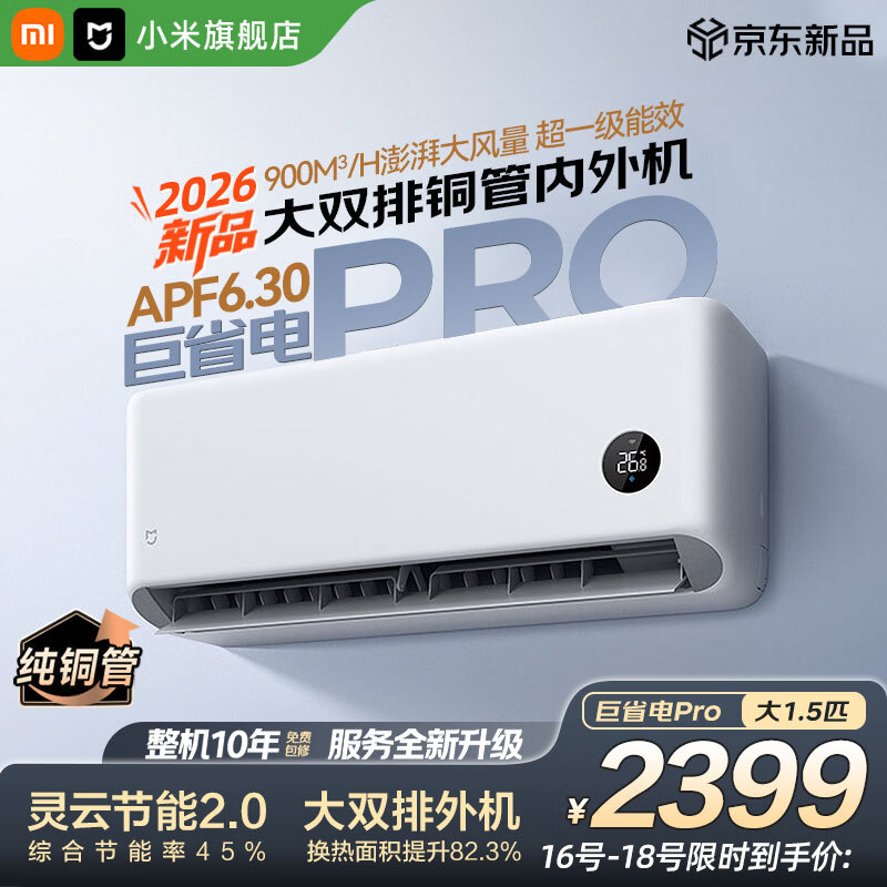 小米(MI)空调米家 1.5匹 巨省电 新一级能效 变频冷暖 家用卧室 壁挂式自清洁舒适空调挂机 巨省电pro 26款 大1.5匹 APF6.3双排冷凝器