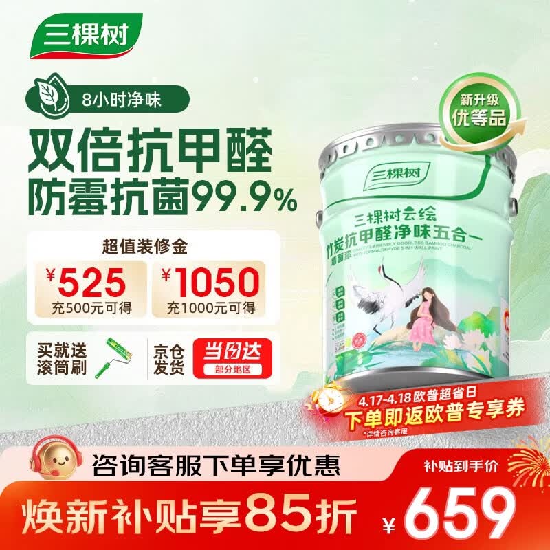 三棵树漆(SKSHU)乳胶漆内墙漆室内云绘竹炭抗甲醛净味五合一墙面漆油漆涂料 18L