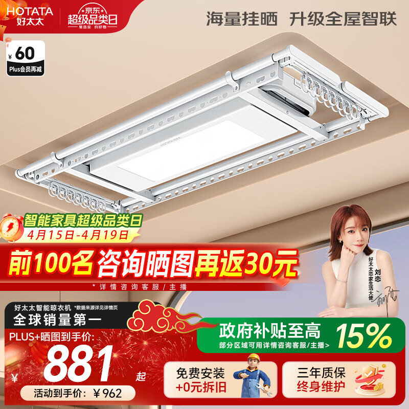 好太太(Hotata)电动晾衣架智能隐形超薄小阳台米白晾衣架升降晾衣杆家用 D10-ZM白色T:米家App语音+46孔