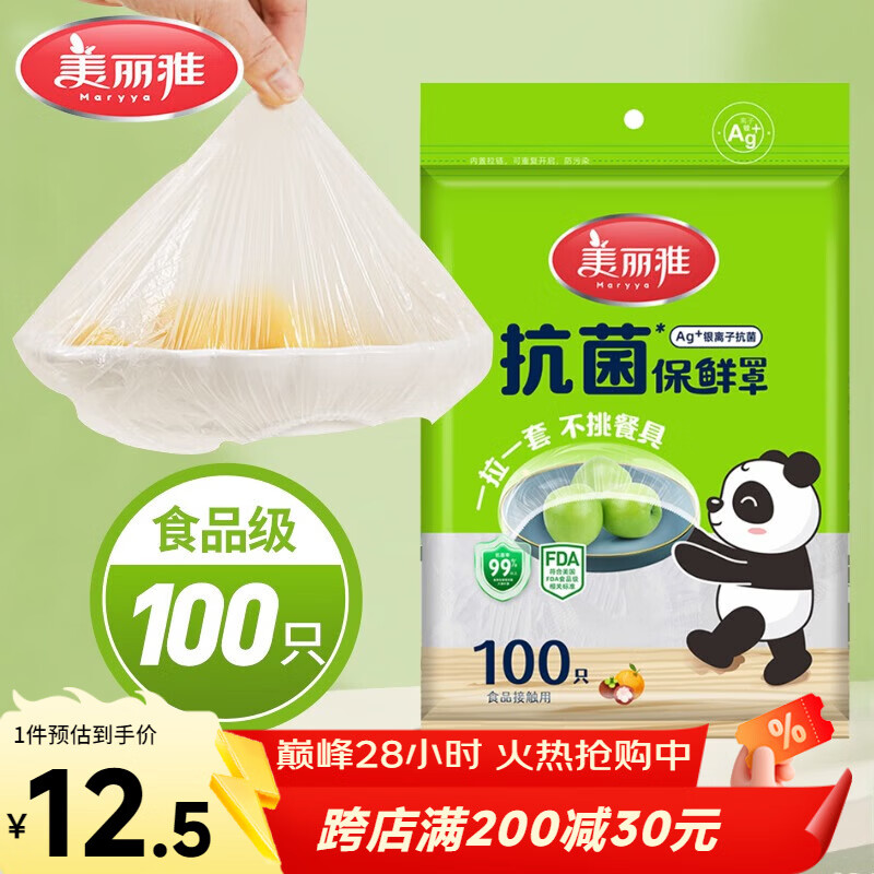 美丽雅一次性保鲜套100只 食品级抗菌防尘罩保鲜袋膜套 厨房剩菜食物罩