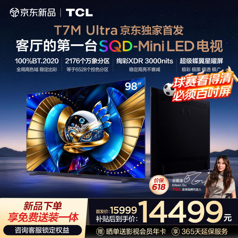 TCL电视 98T7M Ultra【京东独家】桌面底座送装一体 98英寸 SQD-Mini LED 100%全局高色域 T7L Ultra
