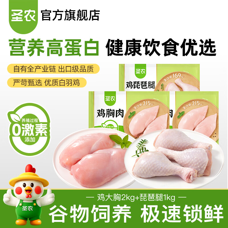 圣农鸡翅中鸡胸肉生鲜轻食餐食品火锅食材 翅中单只30g-40g 鸡大胸4斤+琵琶腿2斤
