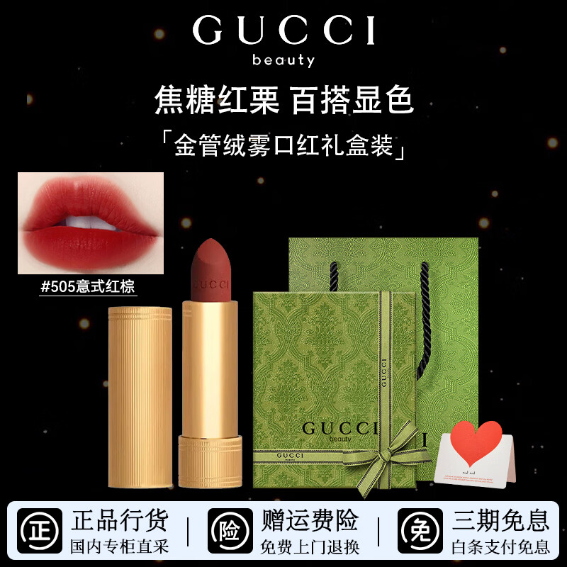 古驰(GUCCI) 口红绒雾哑光208碎花丝润套装唇釉505217生日礼物圣诞礼物送女生 【热卖】绒雾口红 505#意式红棕