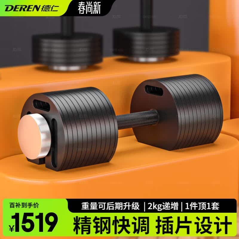 汇聚德仁快调哑铃可调节纯钢男士家用运动锻炼健身器材插片式纯钢大师 【纯钢】100KG(50KG两只)2kg递增