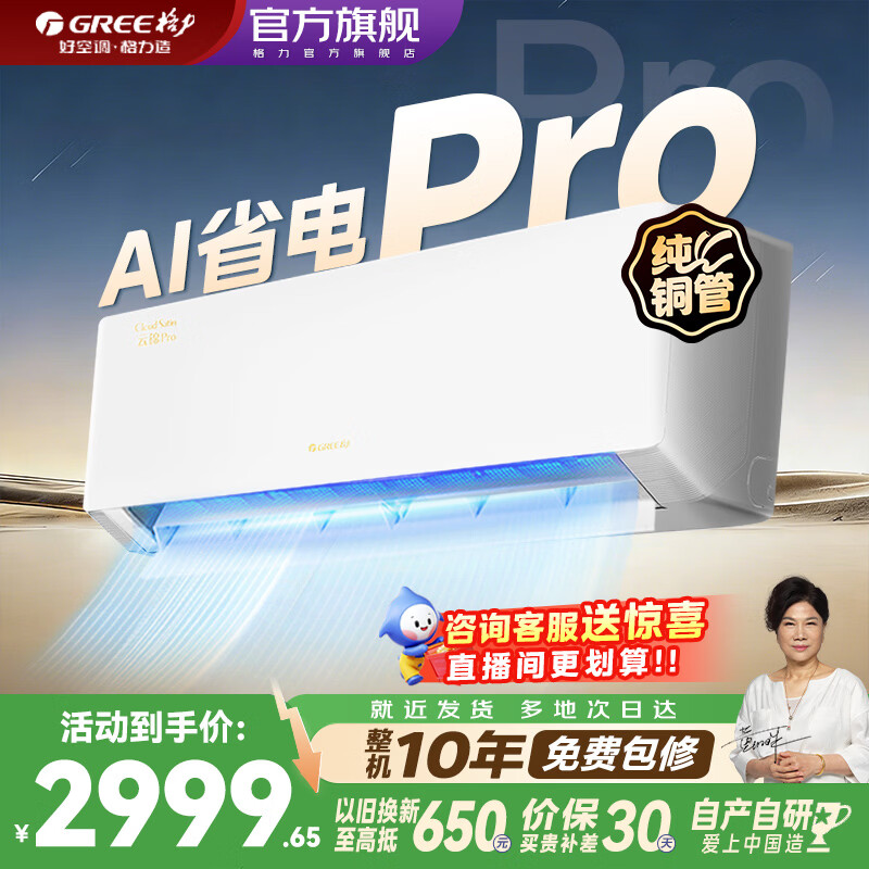 格力(GREE)空调1.5匹云锦PRO三代升级款新一级能效变频省电冷暖智能WIFI壁挂卧室挂机家用官方旗舰国家补贴 云锦PRO 大1匹 AI动态节能 700大风量 精准控温