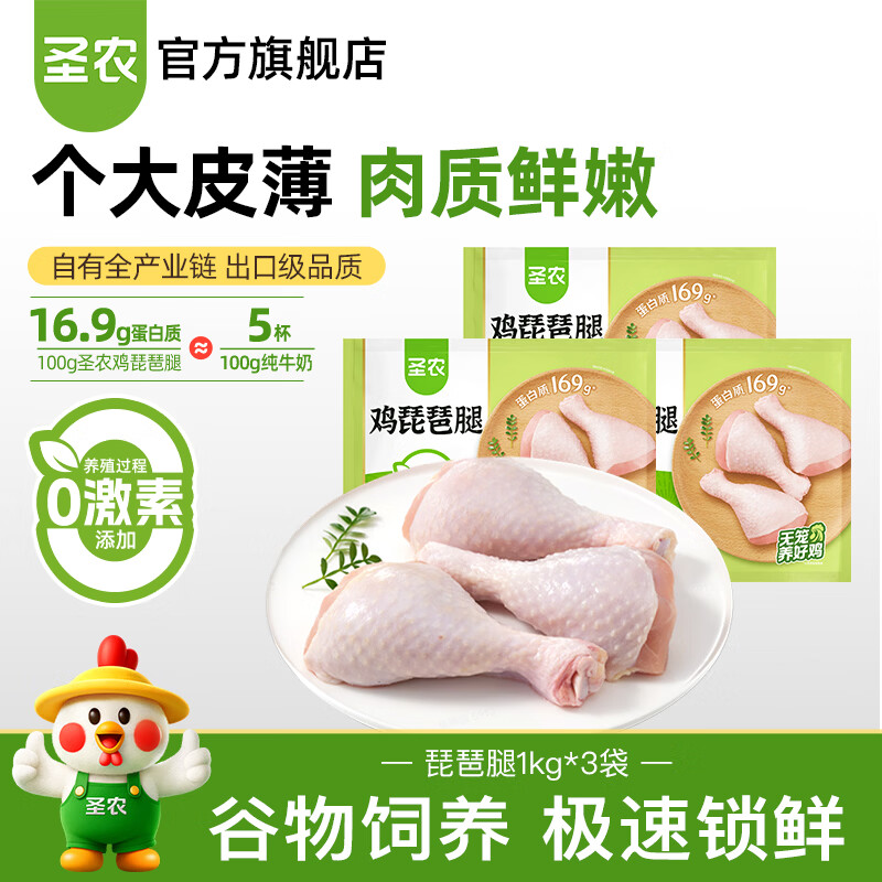 圣农鸡翅中鸡胸肉生鲜轻食餐食品火锅食材 翅中单只30g-40g 琵琶腿6斤