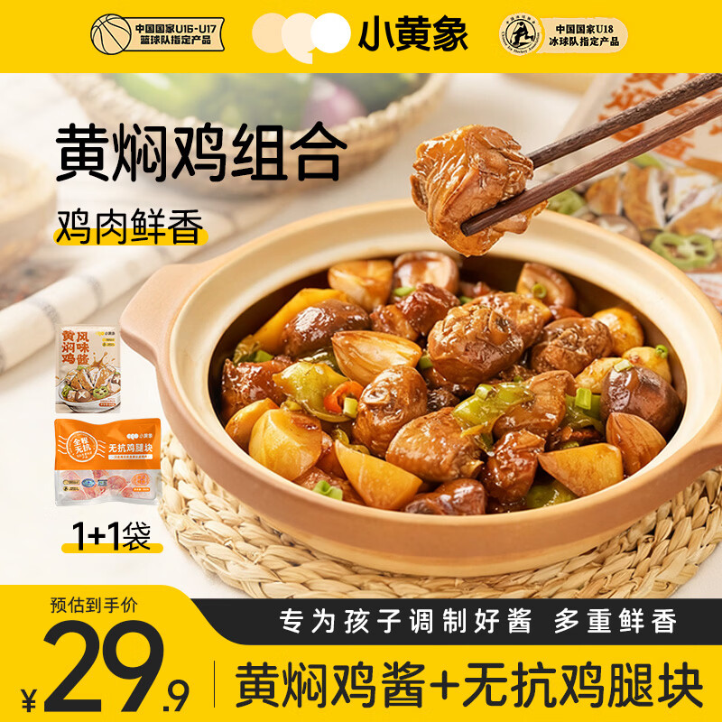 小黄象黄焖鸡腿块410g(无抗鸡腿块350g+黄焖鸡酱60g)无抗鸡腿块黄焖鸡酱