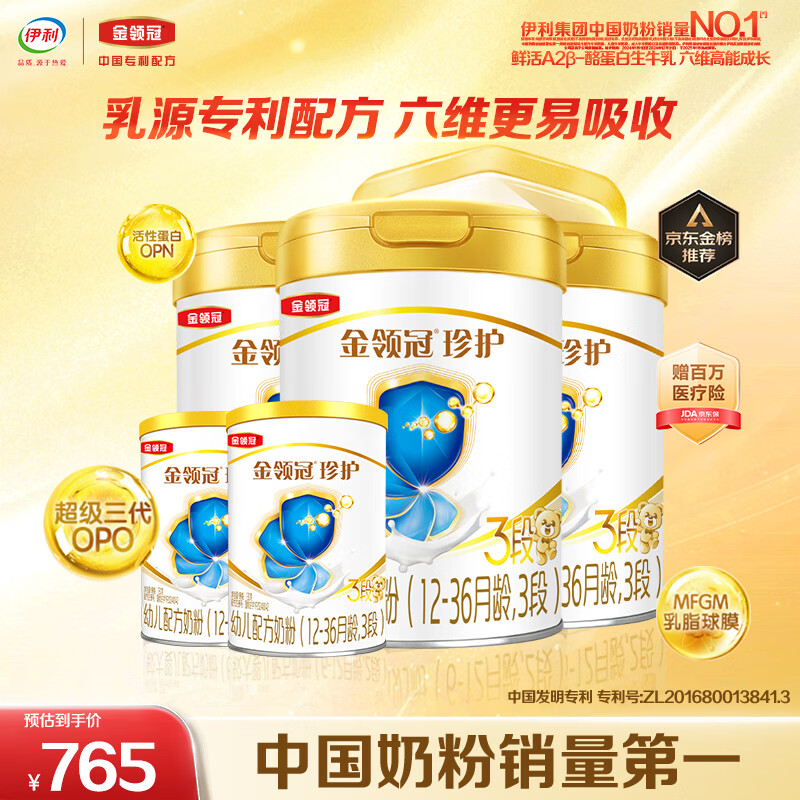 伊利金领冠珍护幼儿奶粉3段(12-36月)900g*3罐+130g*2罐 HMO乳源专利