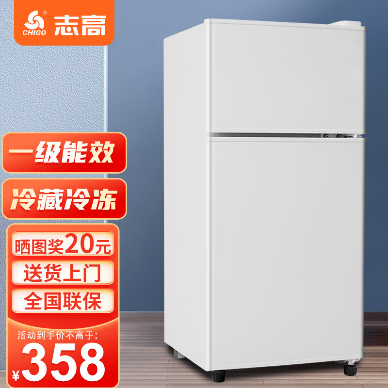 志高(CHIGO)小冰箱迷你小型家用冷藏冷冻两用宿舍出租房用双门办公室电冰箱节能省电 【一级能效】66L白色【全国联保丨节能省电】