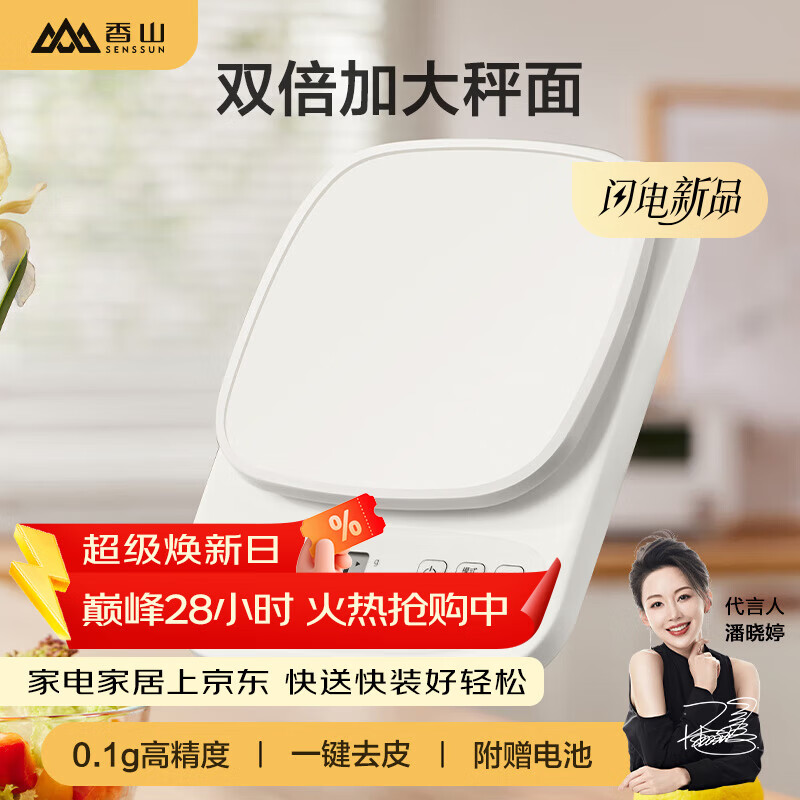 香山电子秤 厨房秤 烘焙秤 高精度0.1g 电池款-【0.1g/3kg】-奶白