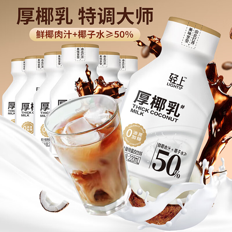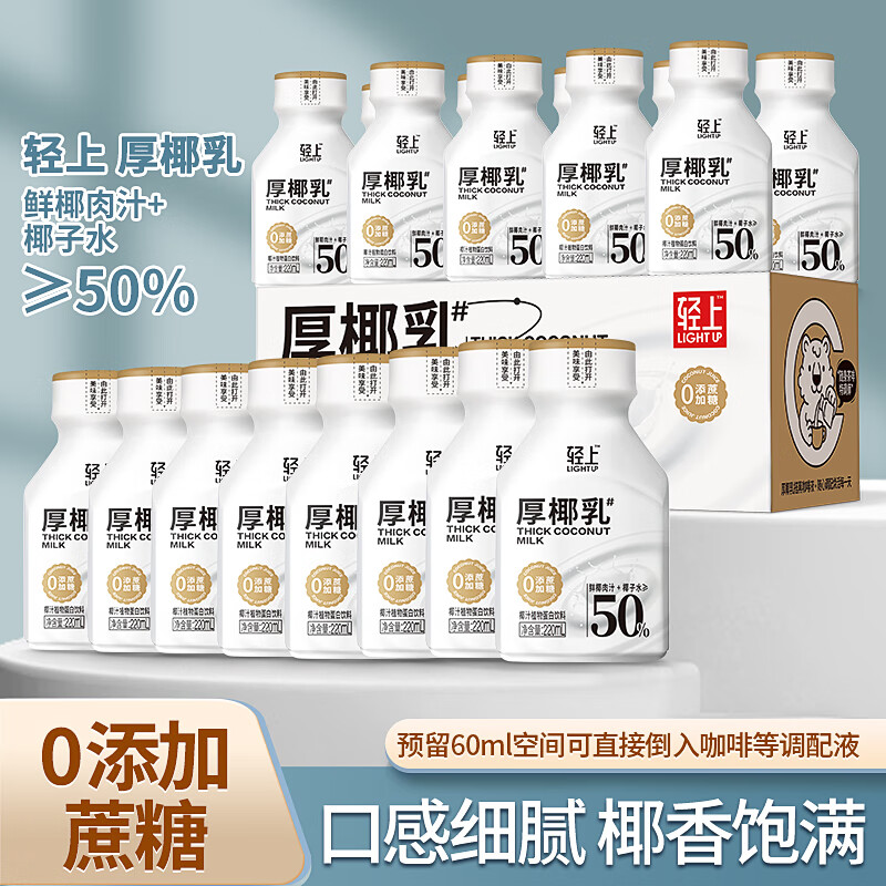 轻上【年货礼盒】轻上椰汁0糖生椰厚椰乳 植物奶蛋白饮料 厚椰乳220ml*10瓶