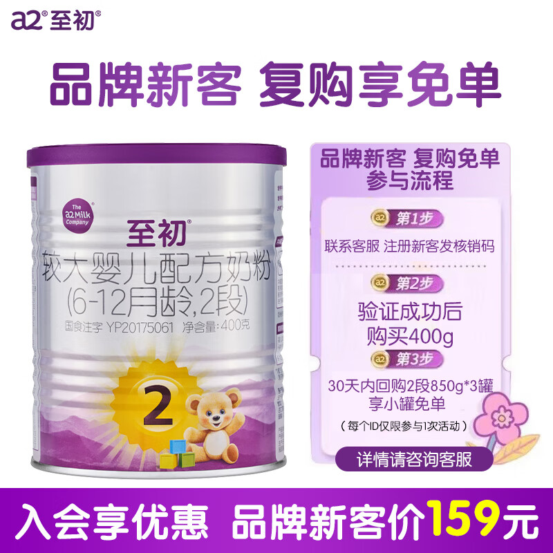 a2至初2段奶粉 较大婴儿配方奶粉 6-12月适用 400g/罐 1罐 【注册新客 复购免小罐】