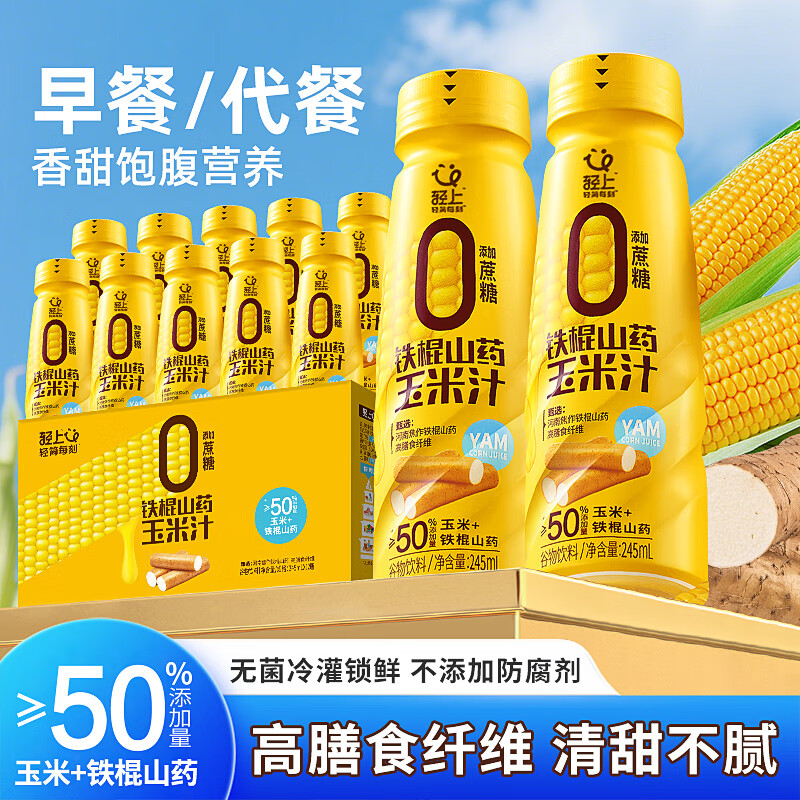轻上【年货礼盒】轻上100%果汁含量苹果汁红富士苹果果汁饮品整箱装 铁棍山药玉米汁喜庆版245ml*10瓶