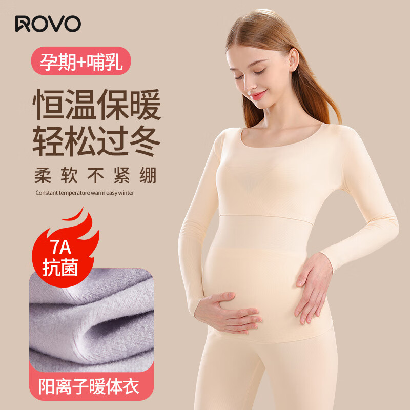 ROVO孕妇保暖内衣哺乳秋衣秋裤套装秋冬产后喂奶怀孕期打底衣月子服 肤色套装【7A抗菌 双面暖绒】 XL