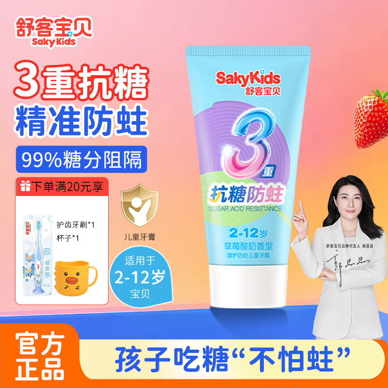 舒客儿童牙膏抗糖防蛀3-6-12岁含氟青少年换牙期护牙 【2-12岁】抗糖防蛀60g*1